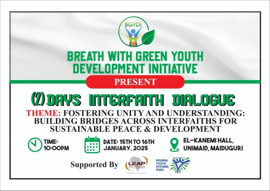 The interfaith dialogue aims to bring together youths from both Islam and Christianity to foster mutual understanding, respect, and cooperation. The primary objective is to create a platform for open discussions about shared values, differences, and the role of religion in peacebuilding. This initiative will help reduce religious stereotypes, promote peaceful coexistence, and empower youth to act as ambassadors for peace in their communities.